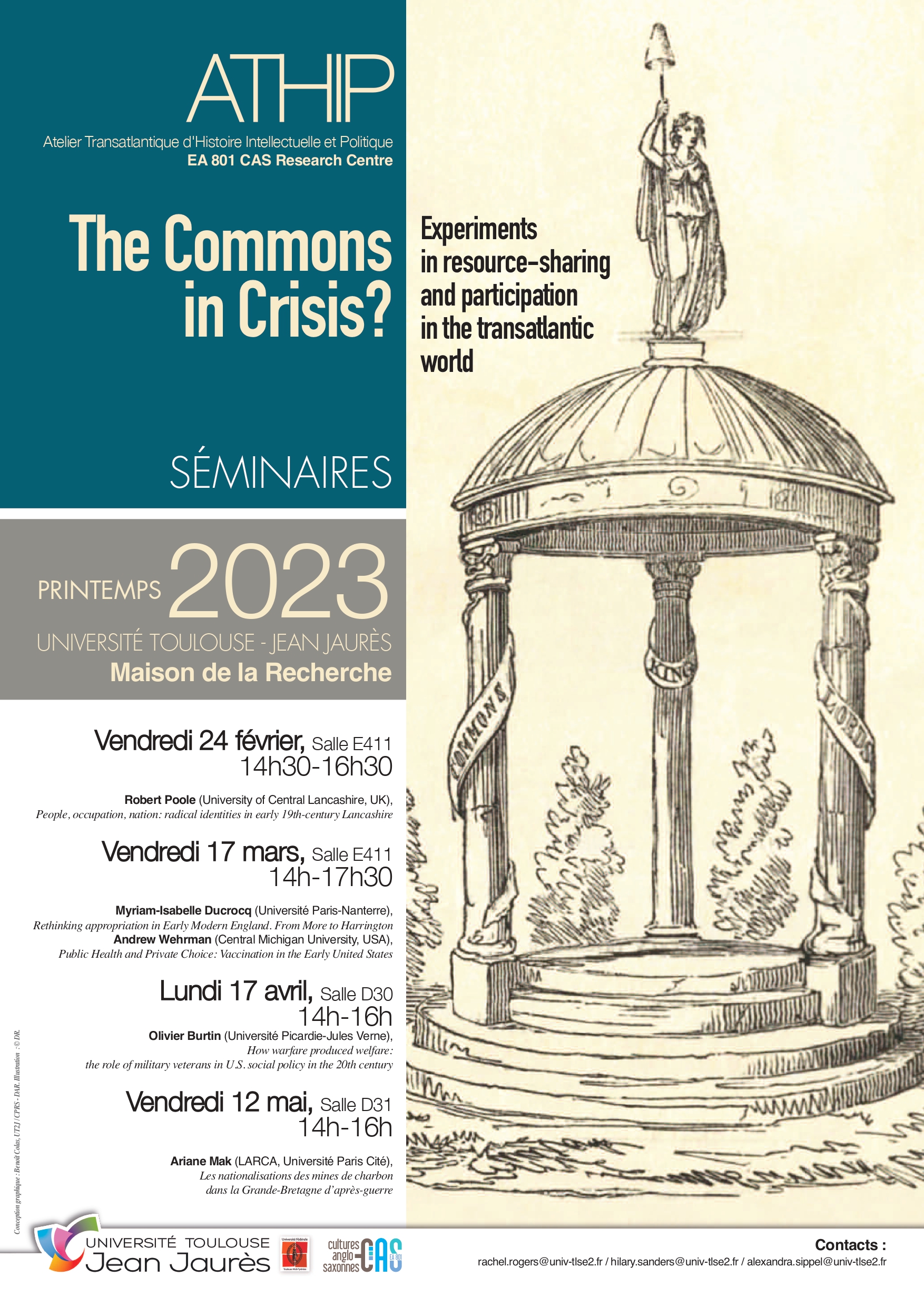 - Myriam-Isabelle Ducrocq: "Rethinking appropriation in Early Modern England. From More to Harrington" / Andrew Wehrman: "Public Health and Private Choice: Vaccination in the Early United States"